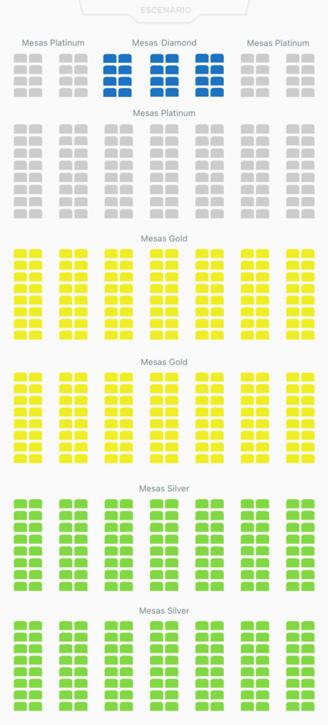 El servicio de cena inicia antes del espectáculo, a las 8:00 p.m.